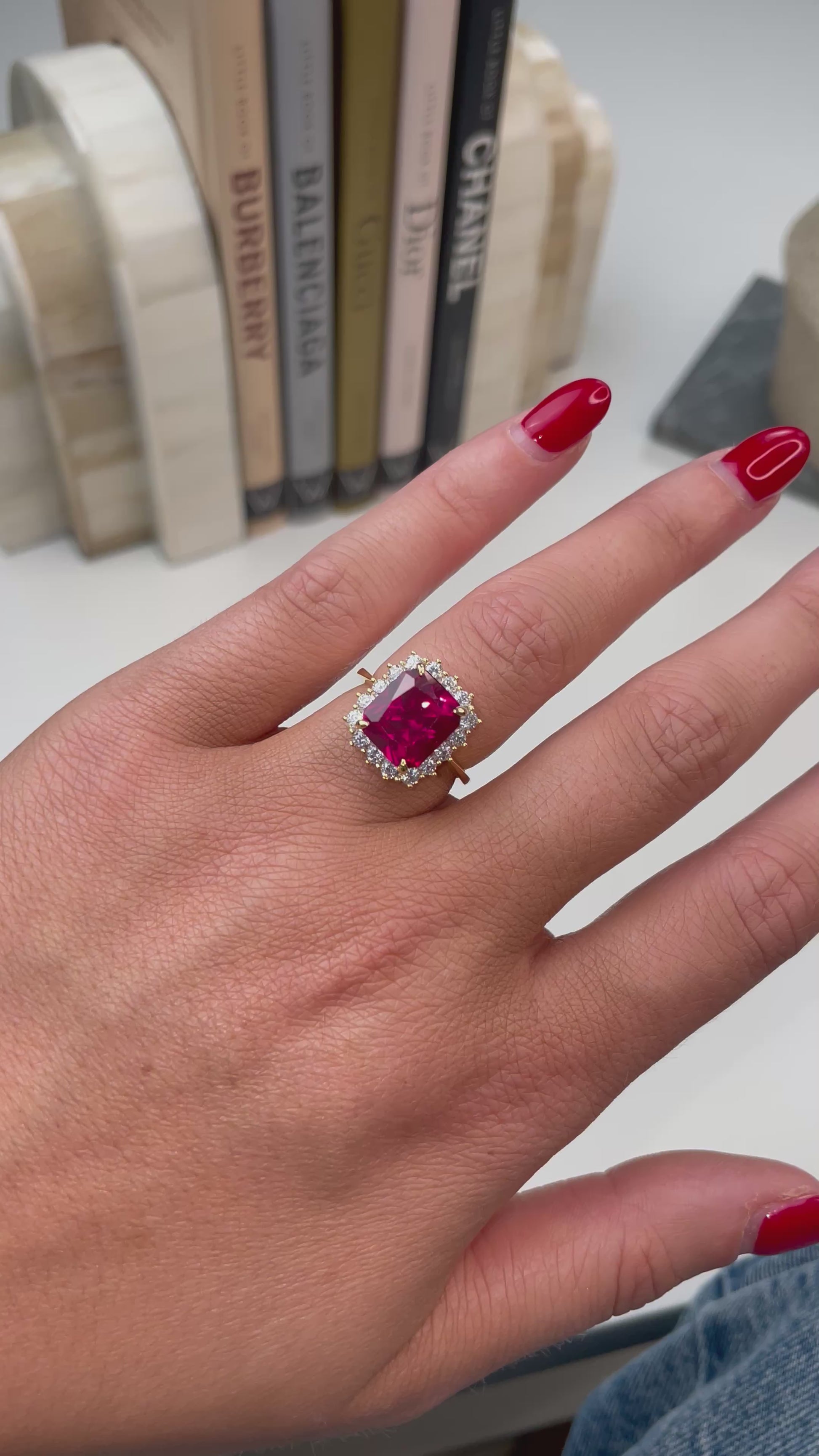 Sunshine Ruby Red CZ Emerald Cut Cluster Ring
