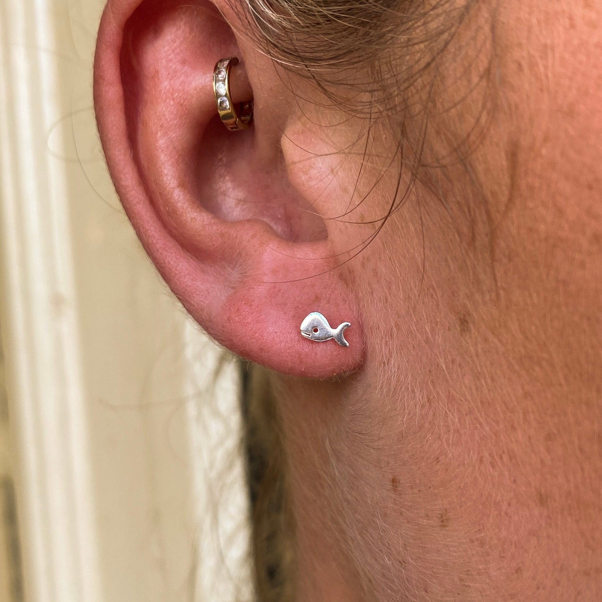 A pair 925 silver Whale stud earrings. 7mm x 3mm